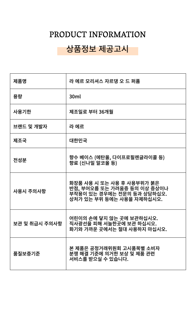 ǰ¸í ¶ó ¿¡¸£ ¸ð¸®¼Å½º ÀÚ¸£´ó ¿À µå ÆÛǾ 30ml