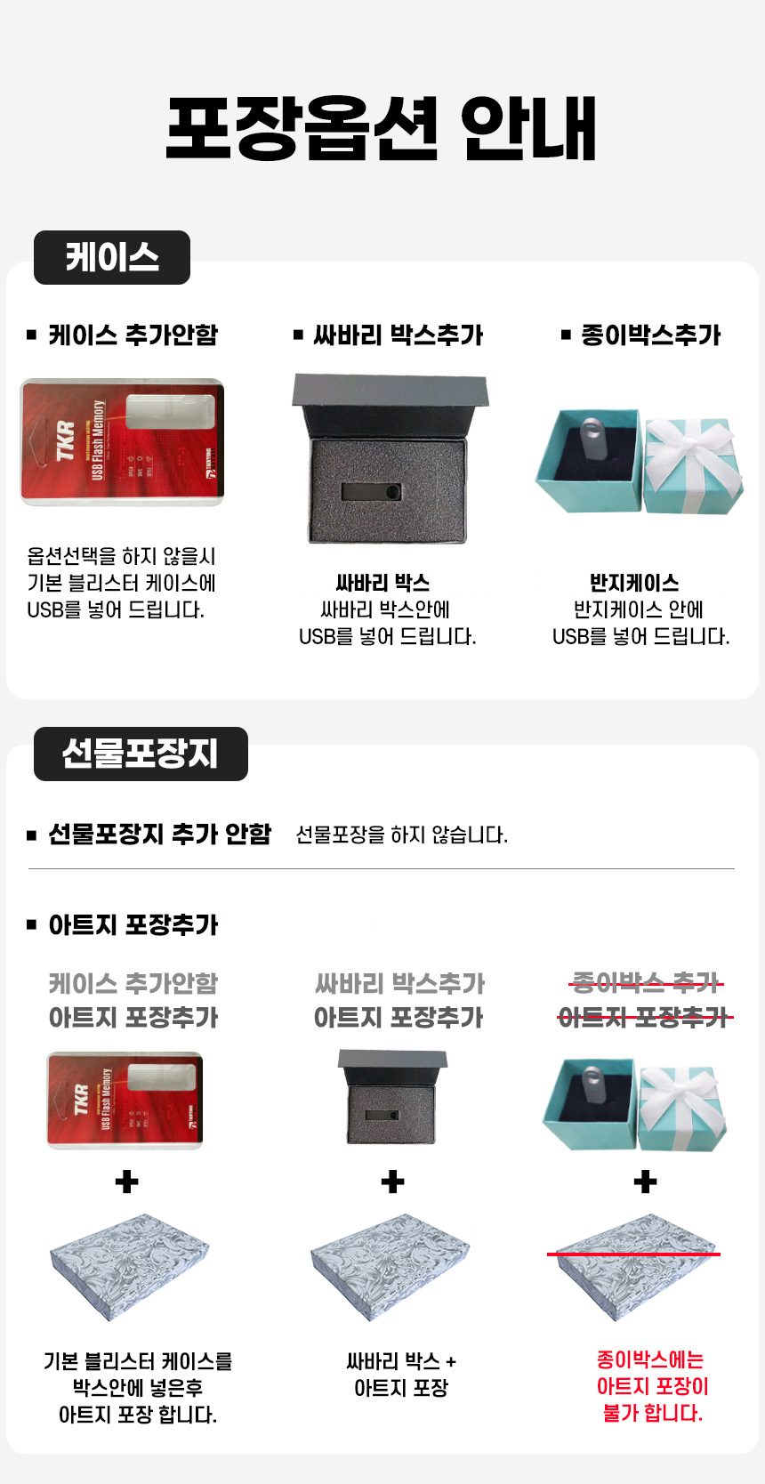 • ÆÐŰÁö, ¼±¹° »óÀÚ µî ¿É¼ÇÀ» Ãß°¡ÇÏ¿© ¹è¼Û ÈÄ ¹ÝǰµÈ »óǰÀÇ ¼±¹°»óÀÚ°¡ ÈѼյǾú°Å³ª µ¿ºÀÇÏÁö ¾ÊÀº °æ¿ì, ÇØ´ç ºñ¿ë °øÁ¦ ÈÄ È¯±ÞµÉ ¼ö ÀÖ½À´Ï´Ù.